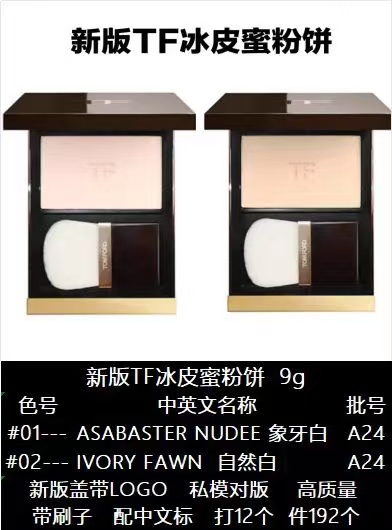 2025 Version Tom Ford’s New Ice-Skinned Pressed Powder, 9gShades: 01# Asabaster Nude, 02# Ivory FawnWith Chinese Label | Original Packaging (12 Pieces per Dozen) | Total 192 Pieces