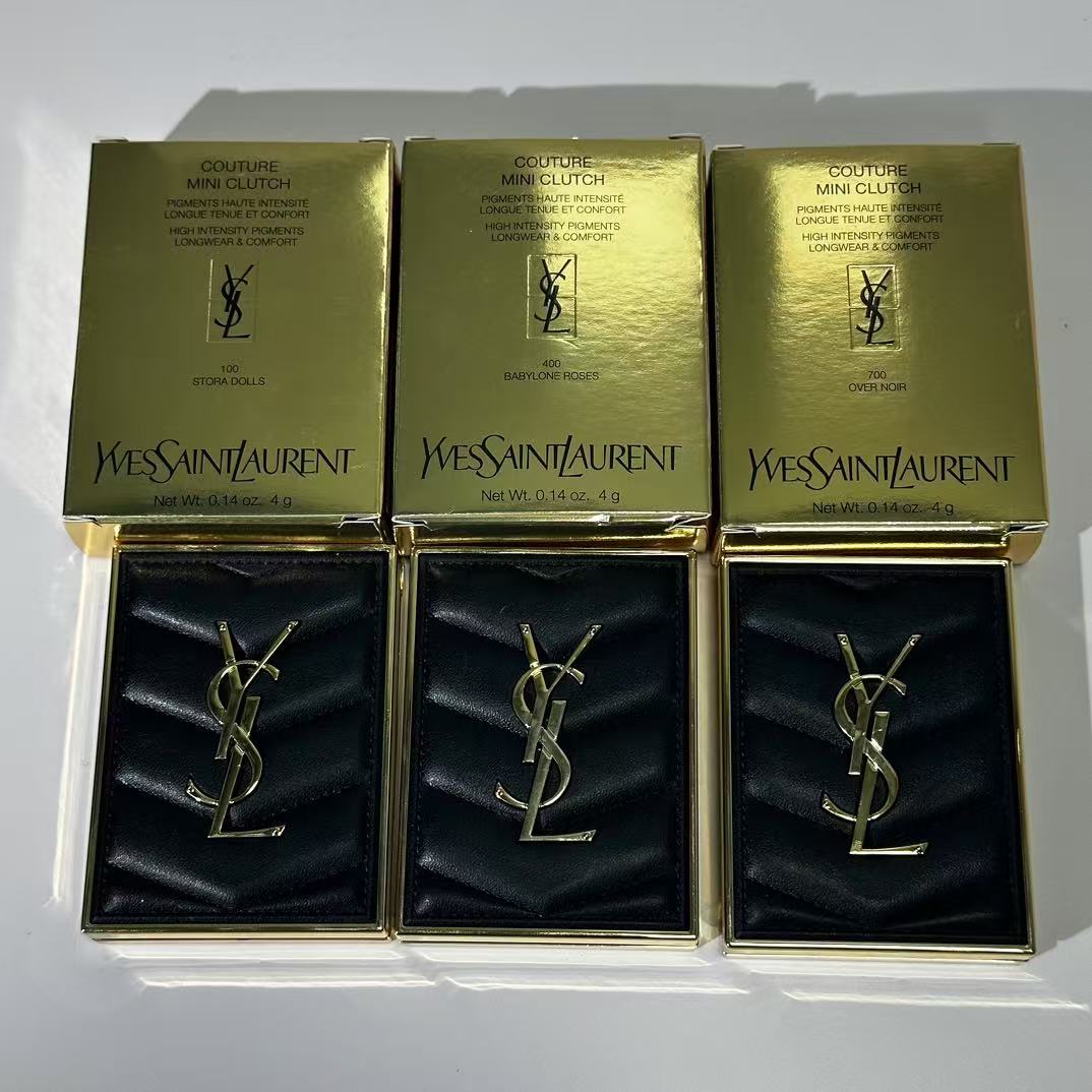 Real Shot, High Quality, Matching Version, Authentic Powder Texture – YSL Yves Saint Laurent Couture Clutch Eyeshadow Palette 4g, with Chinese Label. Piece 144. Batch Number: RJZ61E. Shade Numbers: 100, 400, 700